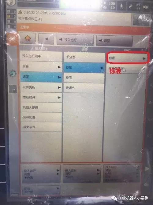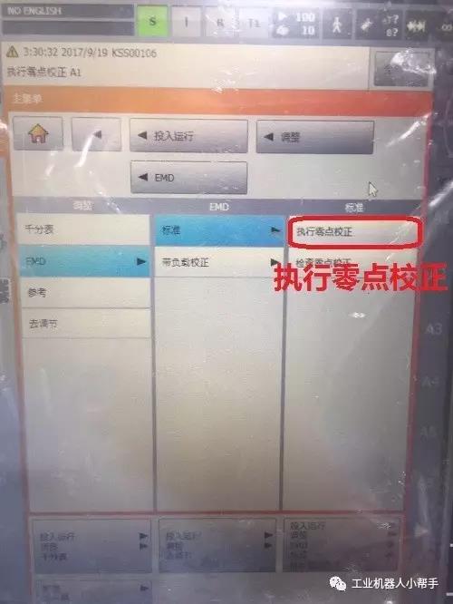 step 4:點擊示教器主菜單鍵,選擇投入運行-調整-EMD-標準-執(zhí)行零點標定;